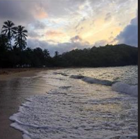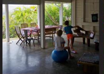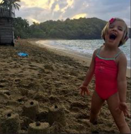 Fin de journée sur la plage sauvage de Anse l'Etang, avec ses grosses vagues pour le bonheur des garçons, et son sable brun pour les châteaux de sable de Zoé, puis soirée cuisine (émincés de poulet au lait de coco et petits piments doux végétariens, la spécialité de Florence, un régal), arrosé de ti-punchs: une bonne introduction à "l'île aux fleurs"!!