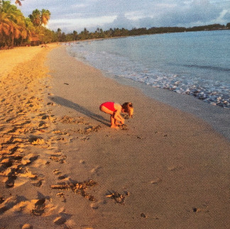 Aujourd’hui, on part pour le Sud-Est. On quitte notre petit logement sur les collines - un bel arc-en-ciel nous dit au-revoir, il a bien plu cette nuit- pour rejoindre la réserve naturelle du Grand Macabou, à l’opposé ! Petite pause à Anse Figuier pour voir à quoi ressemble cette « jolie plage familiale » : plutôt chouette effectivement à cette heure encore assez précoce de la matinée. Nous rejoignons donc la côte sud-est pour effectuer en balade un tout petit bout du sentier de randonnée dit de « la Trace des Caps », direction Cap Macré (merci le Routard et Aude !), et passer par la Pointe Macré pour arriver sur la plage d’Anse Grosse Roche. Après un peu de marche dans une zone de mangrove où des milliers de crabes rouges fuient sur notre passage (on manque parfois d’en écraser tellement ils surgissent de toute part dans un bruit de feuilles sèches qu’ils remuent en se carapatant, c’est très impressionnant ! on regrette les tongs !), on gagne un nouveau paysage, qui rappelle la presqu’île de la Caravelle, mais avec plus de cactus et plus de turquoise ! Le contraste est saisissant dès que le soleil passe à travers les nuages entre les camaïeus de bleus de la mer et les vert-jaunes des cactus, la végétation est ici très méditerranéenne. On avance encore et voilà la grande plage très sauvage de Anse Grosse Roche, très tropicale cette fois avec son sable clair et tous ces cocotiers. Bon moment de grimpe sur les troncs, de cueillette de coco et d’épanchement de soif à l’eau de coco. Vers midi, la balade terminée, on gagne Anse Michel pour aller déguster les super assiettes du resto de plage « le Cocotier » : un régal : purée de pommes de terre et giraumon (une courge locale), tartare de merlin, chips de … ??, acras aux légumes, banane plantain aux épices.. un super rapport qualité-prix, accompagné d’un jus frais goyave-ananas ! On continue l’après-midi sur l’îlet Chevalier, dans le même secteur. Un petit îlet face au Cap Chevalier, qu’on rejoint en yole de pêcheur, à la demande : personne dans la cahute, personne sur le ponton, « je suis au restaurant chez Gracieuse en face » nous dit un message écrit à la craie sur les planches en bois !! La créole attitude ! Nous qui pensions peut-être tomber dans une excursion à touristes, on est gâté ! Pas âme qui vive ! Le pêcheur nous emmène tous seuls et c’est seuls que nous débarquons sur la petite plage ; seuls également pour le tour de l’île, pendant une heure environ, et avec quoi comme végétation ?? des cactus, partout des cactus ! Je trouve ça super beau, l’ambiance de cette balade un peu sportive malgré tout est très sauvage, très « seuls au monde » dans cette végétation aride, herbeuse, cactée, avec l’océan Atlantique et sa barrière de corail tout près. La lumière de l’après-midi qui avance sublime tout. Séance PMT un peu décevante mais le soleil s’est caché, sauts de ponton pour les garçons, et il est temps de retourner d’où l’on vient. On s’octroie une séance glaces artisanales (goyave, ananas, cacahuète) auprès d’un couple qui pousse sa charrette colorée avec sa clochette sur la plage des Salines, la fameuse, réputée la plus belle de la Martinique. A cette heure tardive, la lumière ne permet plus de distinguer la clarté de l’eau qui doit être superbe, mais il n’y a presque plus personne sur le sable, si doux, et la lumière descendante est magique…Dernière baignade pour les enfants, probablement la meilleure de la journée, celle où on n’arrive plus à les faire sortir de l’eau.. mais on doit rentrer sur Tartane, une petite heure et demi de route nous attend tout de même ! Passage dans le prometteur village de Ste Anne qui semble allier avec harmonie les petites boutiques touristiques et l’authenticité de sa vie créole, et nous voilà de retour sur la presqu’île de la Caravelle pour retrouver Florence et les garçons. On va bien dormir cette nuit, encore une fois !