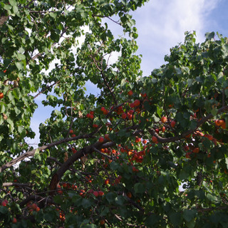 Petit goûter réconfortant sous les chauds rayons du soleil revenu au pied des montagnes (thé et gâteau à l’abricot !), puis on se promène dans le village de Tossor pour admirer les jardinets, les vergers, les pommes plus rouges encore que celle de Blanche-Neige !, les abricotiers chargés de fruits bien mûrs. Nous finissons la journée sur la plage du lac : en face les nuages emprisonnent les hauts sommets qui sont alors invisibles. L’environnement est très beau, très reposant.