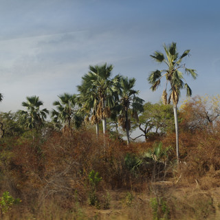 Nous arrivons en fin d’après-midi au campement Wassadou, à l’entrée du parc national du Niokolo Koba, réserve animalière la plus grande du Sénégal: la lumière est maintenant dorée et contraste avec la blancheur laiteuse et écrasante de celle de midi, la végétation verdit et se densifie, les palmiers abondent!