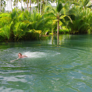 On a donc fait une belle journée d’excursion, depuis Général Luna jusque Del Carmen, le port d’où nous sommes partis en banka pour les îlots au large, en passant par « Coconut view » et « Coconut road » qui offrent des panoramas très chouettes sur la cocoteraie, et la rivière Maasin où les enfants ont sauté depuis la plate-forme de bois dédiée. (et où mon drone a décroché, alors que je les filmais, suite à une collision avec des feuilles de cocotier, et est tombé à l’eau… ;()