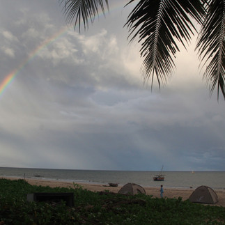 Au 3e jour, on se réveille tôt, un peu avant 6h, sous une lumière incroyable de ciel de pluie qui laisse filtrer le soleil, créant un arc en ciel sur la mer totalement cinématographique il faut le dire ! Les enfants du village nous rejoignent pour le petit déjeuner, en se postant autour de la natte pour nous regarder manger.
