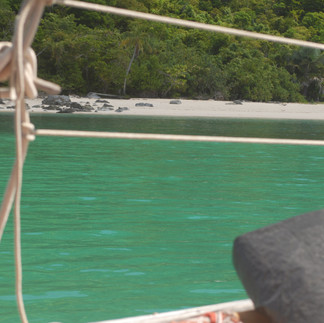 Jacky nous explique qu’ici il arrive que les habitants les chassent encore en braconnage, ce qui explique probablement leur comportement de fuite à notre approche. On poursuit la route vers une autre île toute proche, et on stoppe le mouillage face au village de Berafia, où l'on débarque rapidement car la houle est trop marquée pour moi pour pouvoir manger à bord.
