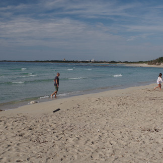 On a trouvé une plage assez sauvage, cernée de buissons sans constructions (merci les vues satellites!), à l’eau cristalline. Quel bonheur de s’y tremper, seuls au monde, dans la douceur de ces températures automnales!
