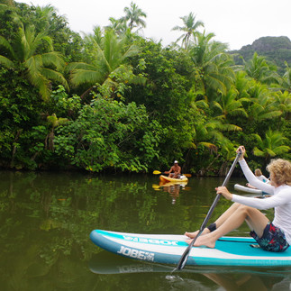 On met les paddles à l’eau pour l’après-midi et on remonte la rivière jusqu’au fond. La Faaroa est appelée « Petite Amazonie », et c’est vrai que c’est un décor bien à part qui déroule devant nous, dans un silence absolu.