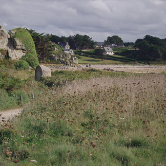 Après le pique-nique, on reprend la route et voilà qu'on parvient doucement sur les débuts de la célèbre Côte de Granit Rose : c'est la Côte d'Ajoncs qui s'annonce à nous, dans son charme paisible, intime, encore très préservée et loin du tourisme qui nous attend plus à l'ouest. Le paysage est doux, tendre, c'est celui du si joli film "Un long dimanche de fiançailles" qui confirmait Audrey Tautou et révélait Gaspard Ulliel en 2004.