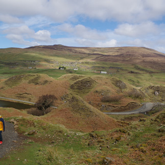 On a donc le temps de rouler sur la péninsule de Trotternish, tout au nord, avant de gagner les Fairy Glen, une vallée toute bosselée aux paysages surprenants, faite de cônes herbeux et de petite collines vertes, avec un chemin qui serpente en son sein.