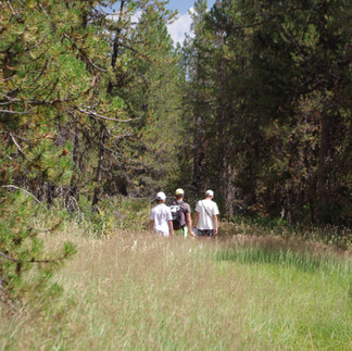 Une fois garés sur le parking, et après avoir marché quelques centaines de mètres au milieu des herbes hautes et des fleurs séchées, on doit d’abord traverser une rivière, bien vivace. Le paysage est déjà charmant, entre prairies, pins, et bruit de l’eau…