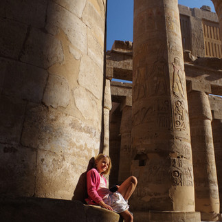 Karnak est considéré comme le site le plus grandiose de toute l’Egypte pharaonique, et y déambuler dans la lumière du soleil levant, avec si peu de monde autour de nous, est vraiment impressionnant. 4700 ans d’âge, le plus grand site religieux jamais bâti au monde, dédie au Dieu Amon. Zoé n’est pas de bonne humeur ce matin, elle aurait dormi encore une matinée entière dans sa petite couchette de train… Mais finalement, c’est en me racontant les légendes des dieux et déesses égyptiens, lus la veille au Caire, qu’elle retrouve son entrain habituel, on ne l’arrête plus!