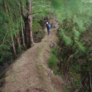 La première partie est relativement facile, sous couvert d’une dense végétation, et nous atteignons en moins d’une heure ce qu’on a appelé « la passerelle de la mort », un petit tronçon en crête d’une cinquantaine de mètres, à l’issue d’un sentier en bord de falaise, le cauchemar de Pierre pour qui le vertige est de plus en plus difficile à appréhender avec les années.