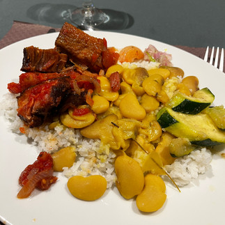 Le repas est généreux, un porc boucané aux grains (des gros pois du Cap) délicieux, tellement réconfortant après cet effort exceptionnel, et on se demande tous comment on va réussir à remonter le lendemain!