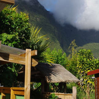 Notre chambre familiale est charmante, on pose les affaires et Pierre et moi repartons explorer les environs : le gîte « le Mafatais » tient une petite boutique locale, et nous passons un long moment à discuter avec sa propriétaire. En plus de t-shirts de sports géniaux qu’elle a dessinés et qu’on lui achète bien volontiers en souvenir de notre aventure en famille, elle nous raconte la vie dans les ilets, les anecdotes (ou comment un couple avec une femme enceinte de 6 mois et demi est arrivé jusqu’ici en réalisant que le retour serait impossible… certaines personnes sont magiques !!!), les ravitaillements, et sa vie quotidienne faite de cette marche hebdomadaire pour aller voir tous les week-ends ses filles en internat sur la côte !