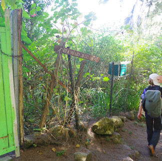 Nous atteignons bientôt un premier Ilet, « Ilet à Malheur les Hauts », composé de poules en liberté dans les hautes herbes, de bambous géants, et d’une clôture ici ou là, avec une boite aux lettres qui nous fait bien sourire quand on imagine un facteur-courage parvenir jusqu’ici!