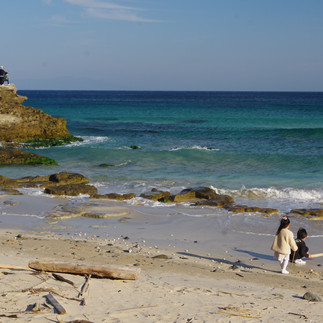 La plage de Shirahama est particulièrement belle avec ses vagues turquoises et son tori rouge posé sur les rochers : voisine du temple qui donne sur le sable, on y ressent une douceur d'été indien très agréable... Si peu de monde, le vent dans les cheveux, la si belle lumière de l'après-midi...
