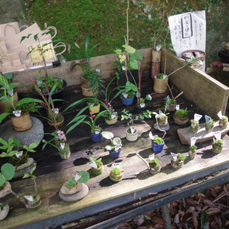 Et à notre grande surprise, à chaque cascade on trouve un tampon à ajouter sur notre carnet de Go-Shuin-Sho! Autant vous dire que la balade tourne vite à la chasse au trésor!! Sophie est dans le même délire que sa grande cousine, on est parfaitement alignées! On croise aussi un petit stand de mini-plantes à la japonaise, de la taille d’un pouce, dans des minuscules vases de bambou creux, c’est totalement craquant! On peut laisser ses pièces dans une tire-lire et se servir… Je me suis laissée tenter, un sacré challenge que de ramener cette touche de poésie japonaise encore vivante jusqu’en France!