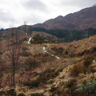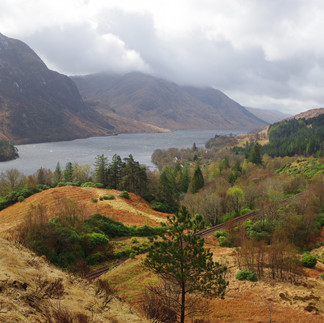 La pluie faiblit, on se lance. Il faut quelques minutes de marche pour commencer à apercevoir le viaduc, puis quelques minutes encore pour grimper progressivement vers le point de vue le plus célèbre. L'ambiance est brumeuse, l'air est saturé d'humidité et nos photos prennent tantôt des teintes rouges, orangées, jaunes, c'est magique !! Harry Potter nous aurait-il fait un petit clin d'oeil ?? On découvre alors (et personne n'en parle dans les guides, ni même au Visitor Center!) qu'un chemin de 1.5 km se poursuit dans les collines, dominant le Loch Shiel, son ilôt, et la voie de chemin de fer, pour gagner la petite gare de Glenfinnan où il existe un "dining car", une adorable "tearoom" dans un ancien wagon, qui sera un refuge parfait pour le déjeuner ! La gare et le dining-car, j'avais lu bien sûr, mais je n'avais vu aucune information sur la possibilité de les rejoindre par un chemin de randonnée plutôt que par la route! Tellement plus charmant, d'autant que la pluie a miraculeusement cessé le temps de la marche!