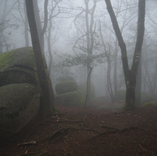 Peyro Clabado, le roc de l’Oie, les trois fromages, le chaos de la Balme, le chapeau de Napoléon, le fauteuil du diable, le lac du Merle, le chaos de la Rouquette, le rocher tremblant de Lascombes, la cascade du Saut de la truite, la région regorge de sites originaux qui nous transportent dans les contes et légendes de notre enfance, décor de fou improbable au sein des sous-bois de Crémaussel. Et la brume qui monte au fur et à mesure de la journée ne fait qu'accentuer l'esprit mystérieux des lieux.