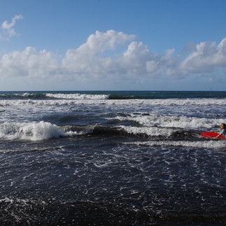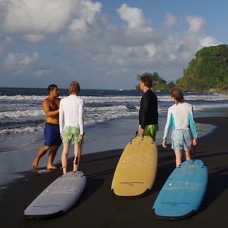 Les plages de sable noir de la côte est s’y prêtent particulièrement bien, avec des rouleaux doux sur le sable pour les débutants, quand les confirmés se font plaisir un peu plus au large dans le lagon, sur les vagues de récif.