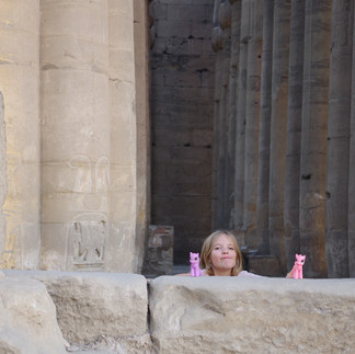 Zoé, elle, a toujours la pêche: les temples de Louxor sont pour elle un immense terrain de jeux, elle a amené ses petits poneys et n'en finit pas de galoper telle une licorne de pilier en pilier, totalement absorbée par son monde imaginaire!