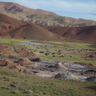 On reprend ensuite le camping-car pour aller se poser pour le petit déjeuner, en bord de vallée, vue géniale pour se remplir l’estomac, et nous voilà arrivés cet après-midi dans la Vallée des Roses, dans le village de Tamaloute (encore appelé Bou Tharar), au bout d’une impressionnante route d’un paysage aride d’ocres et de rouges le long de l’oued M’Goun.