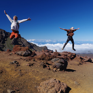 On se réveille au bout de quarante-cinq minutes, tout groggy et reposés, et épatés d’avoir pu nous laisser aller à ce moment si doux dans un environnement pourtant si hostile! Zoé aurait voulu que ça dure encore tout l’après midi Heleakala a dégagé pour nous une atmosphère de totale sérénité alors que ses horizons désertiques pourraient sembler inquiétants...