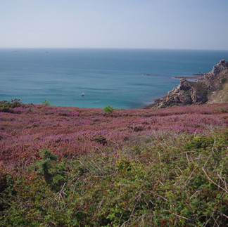 On commence par une matinée sur la très belle plage St Michel à Erquy, avec son îlot pittoresque, qu'on peut rejoindre à marée basse par un banc de sable. L'eau est magnifique, digne des Caraïbes, mais la température nous rappelle bien qu'on trempe dans la Manche! Cernée de rochers à escalader, d'un sable fin très agréable, on savoure ce temps de pause et de jeux sur la plage. On y prend le pique-nique aussi, avant de lever le camp pour aller randonner sur les sentiers du Cap d'Erquy, sur le circuit dit des Plages Sauvages. Lacs Bleus, Four à boulets, vestiges de remparts, lande de bruyères mauves, plage du Lourtuais, puis plage du Portuais, presque 8 kilomètres à dominer la mer, et une belle après-midi entre copains. On dit que la pointe des Trois Pierres au début de la rando aurait inspiré Uderzo pour ses albums d'Astérix!