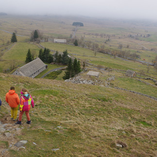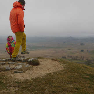 On finit la boucle par une jolie grimpette sur la motte, pour un point de vue à 360 degrés sur les plateaux d'Aubrac, dans le vent et alors que la pluie vient de cesser !