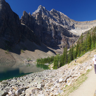 Puis on attaque la seconde partie du trajet qui contourne le lac Agnès puis s’élève progressivement et nous emmène en une trentaine de minutes au Big Beehive, un sommet qui permet un point de vue extraordinaire et vertigineux : on domine ici tout le Lac Louise et son bleu-vert incroyable...