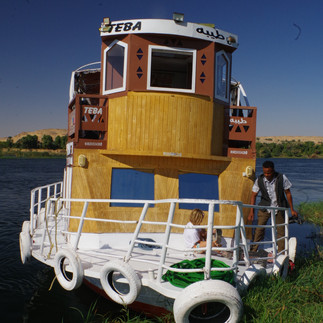 J’ai réservé un « sandal », un petit bateau à moteur, pour trois nuits et deux journées entières de navigation, de Edfou jusque Assouan. Pas facile à trouver, c’est « Zizou » des Amis d’Egypte Travel qui a su être très réactif à ma demande. Une seule cabine sur le pont inférieur, pouvant héberger jusque cinq personnes, une salle de bain avec WC, un très grand pont supérieur pour les siestes, la lecture, les discussions et les repas, voilà qu’on découvre « Teba », notre compagnon de navigation!