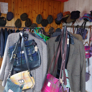 On l’a vu pour de l’alimentaire à Croft 36, de très nombreuses box se trouvent aussi au bord de la route devant les fermes pour les oeufs (hum, quelle saveur pour nos wrap du soir!), mais aussi pour les petits cadeaux et souvenirs en tous genres. Les artisans se donnent à coeur joie, c’est parfois très kitch, et parfois on a d’excellentes surprises comme cette cabane au coucher du soleil sur la route du retour qui promet du « Vintage » « Peace and Love » et qui vend des articles en Tweed de seconde main, après les avoir restaurés. Là aussi, craquage pour un petit sac en Tweed tout mimi, à 25 livres quand on connait le prix du tissu, c’était une bonne affaire ! On a même trouvé, dans le même genre, un micro musée super bien fait sur la culture du Tweed dans la mode mondiale, au bord d'un loch, perdu dans la campagne et encore ouvert à 18h30! Un don est suggéré à la fin, mais on se sent libre d'apporter sa pierre à l'édifice : un concept simplement génial.