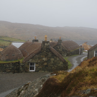 L’arrivée au village des blackhouses de Gearannan est étrange, un peu mystique même! C’est le soleil couchant, on est tous seuls, il n’y a personne pour nous accueillir mais c’était prévu et j’avais toutes les consignes pour arriver. « Village » est un grand mot, il y a sur ce site 4 à 5 blackhouses conservées, ces maisons d’autrefois en pierres et toits de chaume, communes avec la Scandinavie. On les appelle "black" car il faisait très sombre à l'intérieur. C’est aussi un endroit où une des maisons sert de musée vivant en journée, pour expliquer la vie dans ces habitations jusqu’au milieu du XXe siècle.